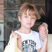 朱莉带亲生龙凤胎外出购物 儿子金发颜值高
